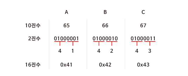 컴퓨터는 8개 비트가 모인 바이트 단위로 정보를 표현한다. 2개의 16진수는 1byte의 2진수로 변환되기 때문에 정보를 표현하기 매우 유용하다.