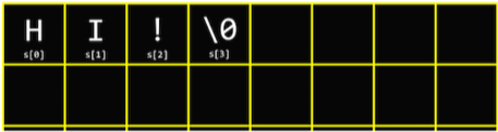 s[3]이라고 저장 마지막에 있는 \0은 'null' 문자 혹은 널 종단 문자라고 불린다. 널 문자는 메모리에서 연속적으로 저장되어 있는 문자열들 사이에서 하나의 문자열이 끝났다는 것을 컴퓨터에게 알려주는 역할을 한다.